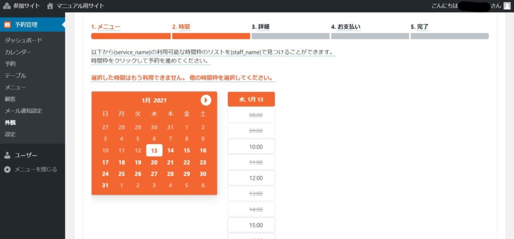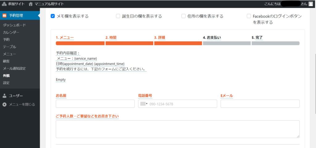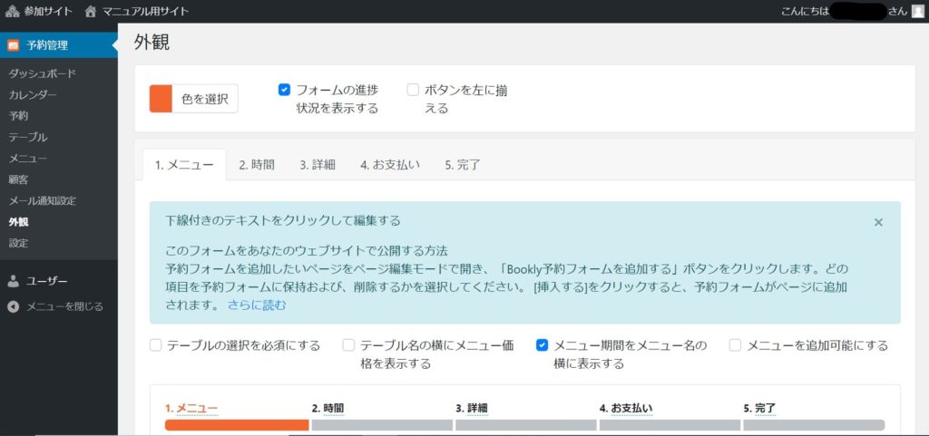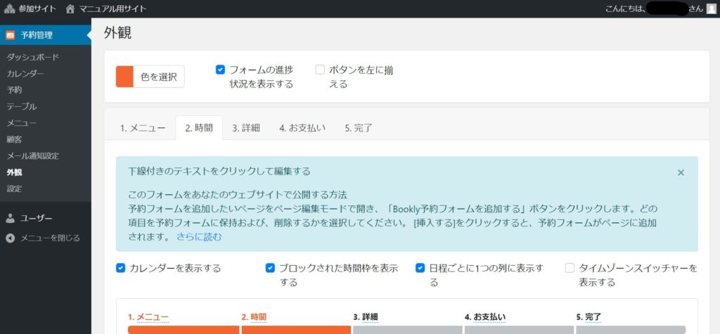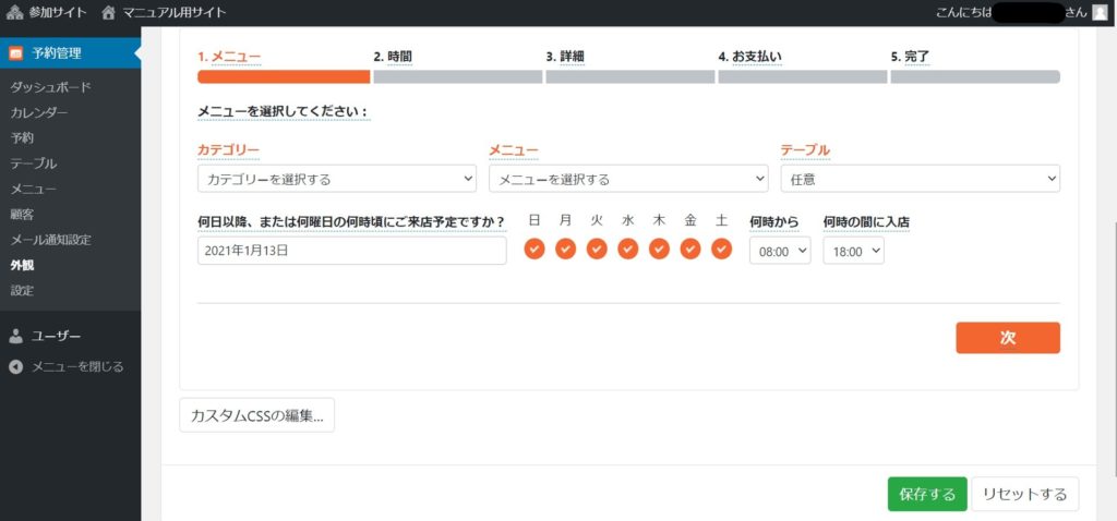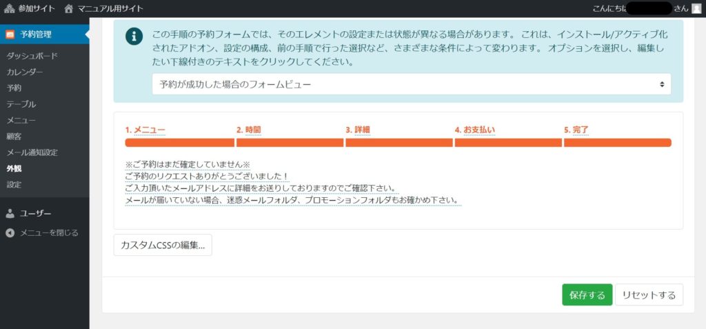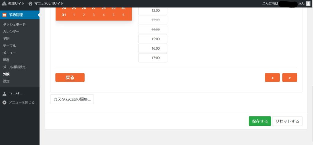 外観の編集をする際には、編集画面とユーザー画面(予約画面)双方からの確認が必要となります。