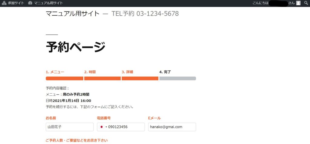 ユーザー画面から同じページを見た場合(お客様からみた表からの画面)です。